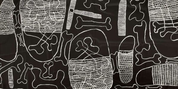 Esther has a rich knowledge of her family history, and has worked as a tour guide at the Djomi Museum. She has recently started working as an arts worker at babbarra Designs. Esther’s first two colour design depicts the story of fire sticks and bones carried in a dillybag, which was common practice for her elders. the fire sticks are also known as letter sticks and served as a permit for balanda.