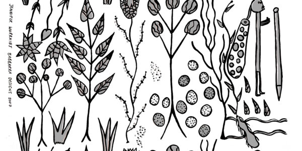 J. Wurrkidj was a highly regarded textile artist who started working at Bábbarra Women’s Centre in 2007. Her print designs featured local bush foods and food-collecting devices such as kunmadj (dilly bag), mandjabu (fish trap) whilst also referencing the activities of ancestor beings and the ceremonial sites of her homeland, Mumeka.