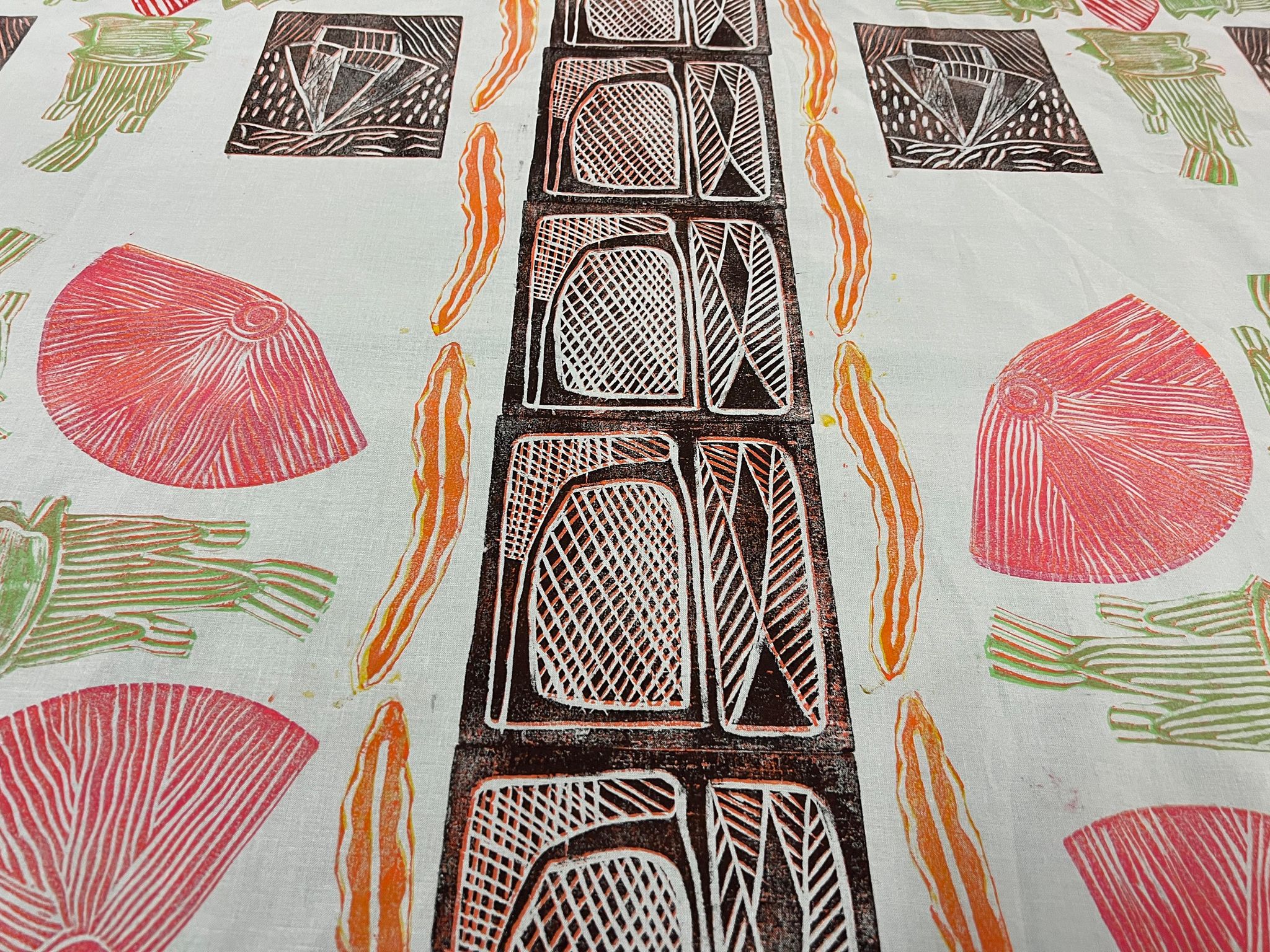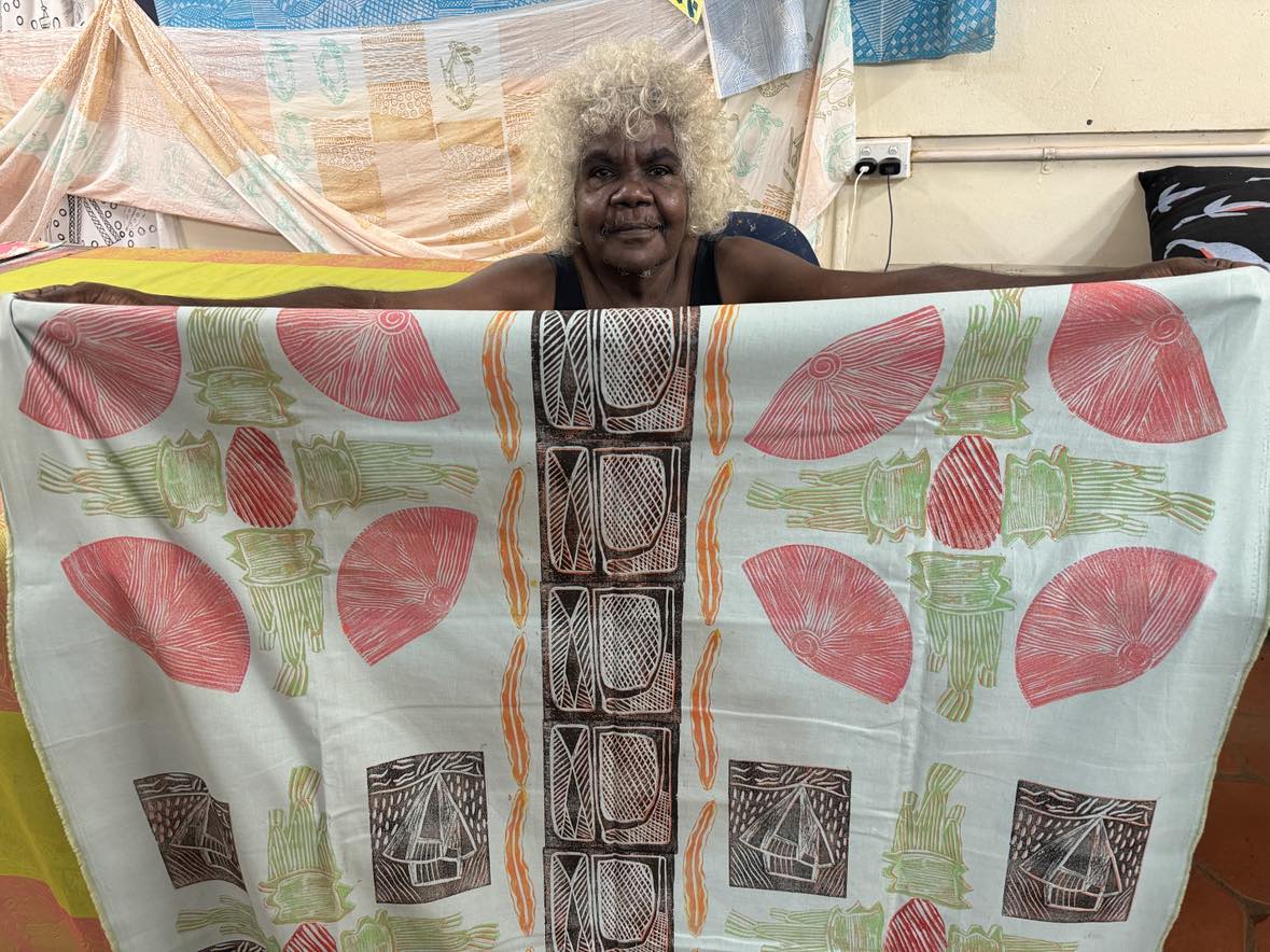 This is the design that we show the people how to walk a long time ago. Kunwarrde, rocks is there too in red, cut in pieces. People were there at Mankorlod and they talk to each other.’ Janet Marawarr 2025