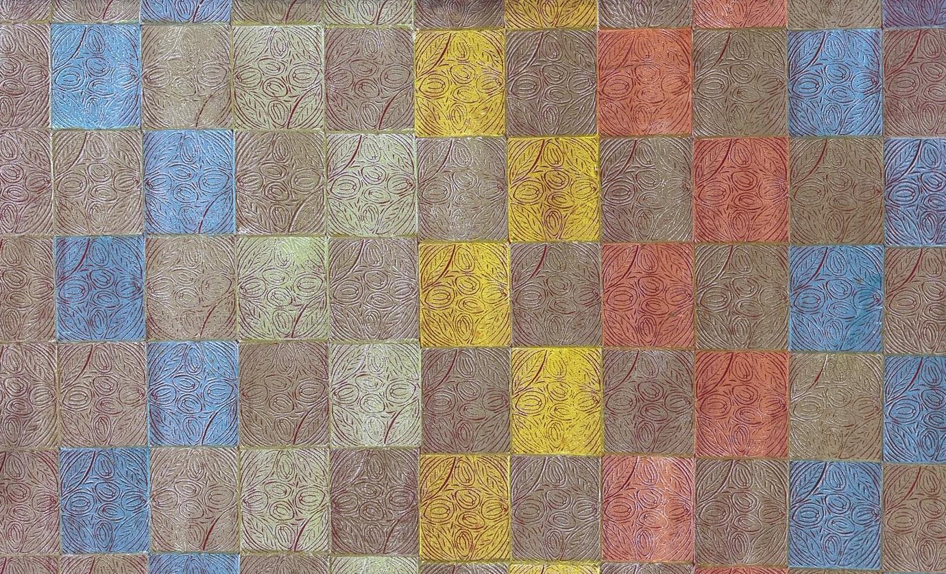 The lino tile has been carved by the artist in Maningrida, and has been printed by hand using a variety of colours and layers. The linocut technique ensures each textile piece is a one-off, limited edition piece. Bábbarra Women’s Centre supports the economic independence of Indigenous women in the Arnhem Land community of Maningrida, Northern Territory, Australia. Designs created by the women at Bábbarra reflect strong cultural knowledge, which is passed down to younger generations through their textile design practice.