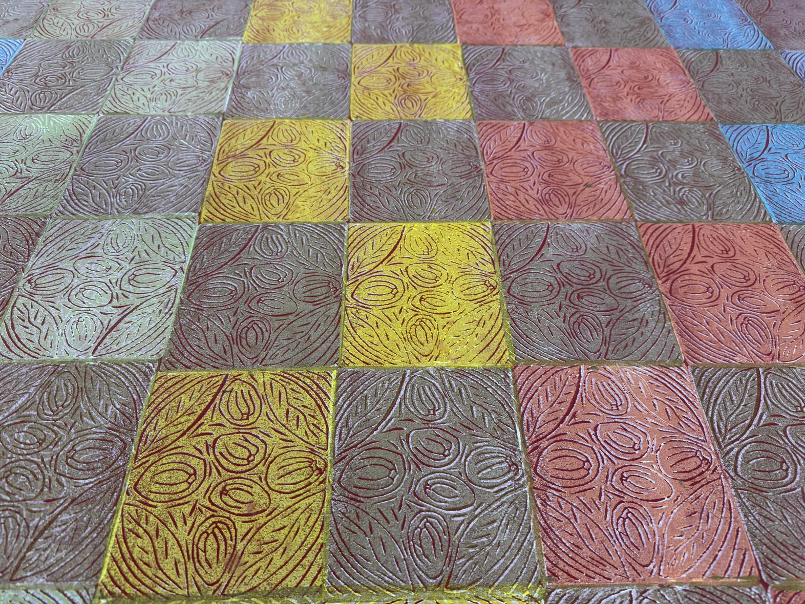 This fabric was created using the linocut printing technique.