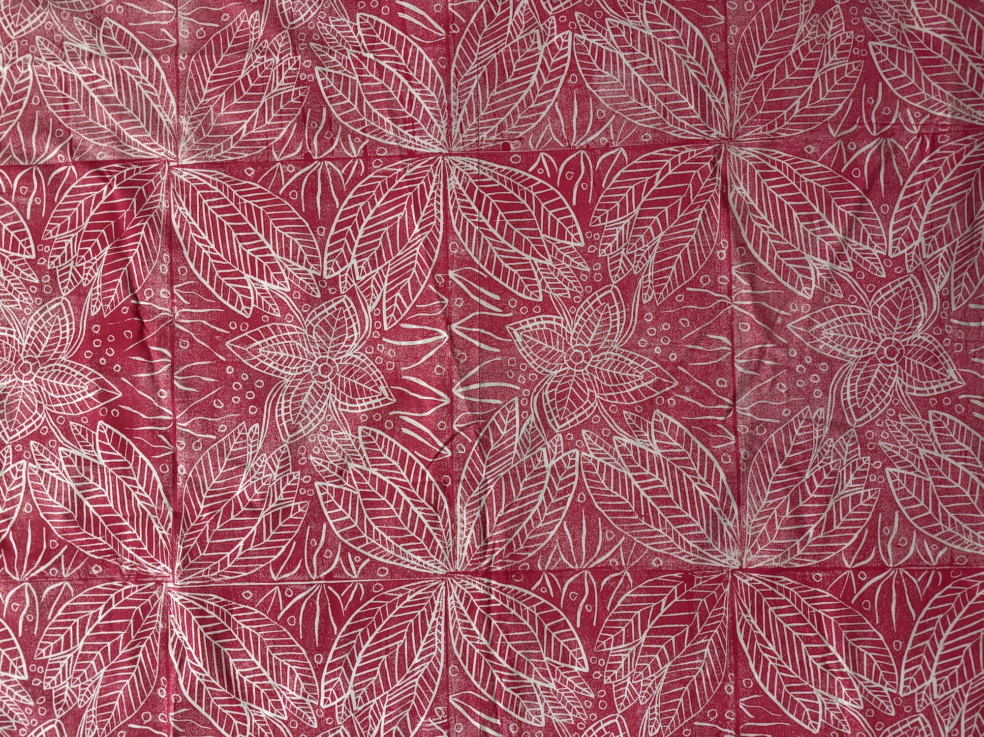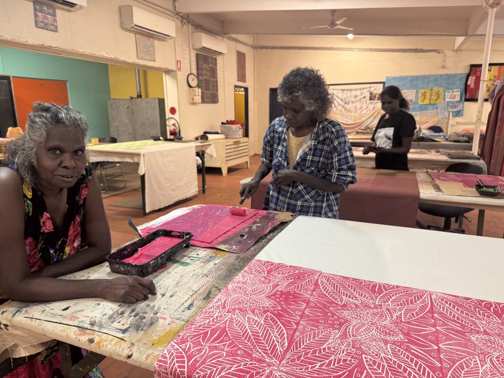 This fabric was created using the linocut fabric printing technique which has been refined at Bábbarra Women’s Centre since it was introduced in the early 2000’s.