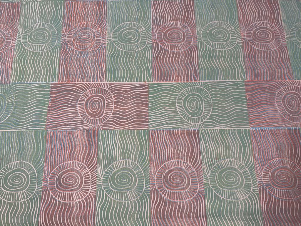 Artists weave many different kinds of mats. Conical mats were traditionally used to shield babies from mosquitoes. Long flat mats were used for blocking creeks so that fish would be diverted into fish traps. A small triangular mat made of pandanus fibre used to be worn by women during ceremonial gatherings, tied around their back and covering them at the front. Mats are also used for wrapping and rinsing food in water.