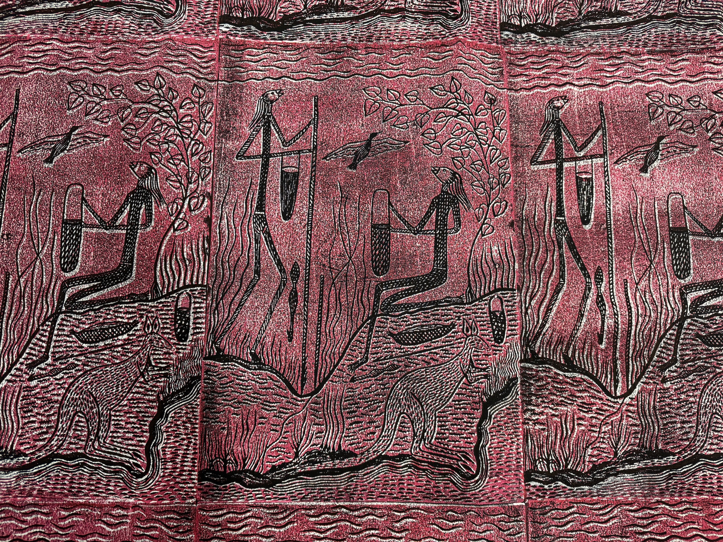 A two colour screen print design from 2022. Jay’s first large format design to join the Bábbarra Designs Collection.
