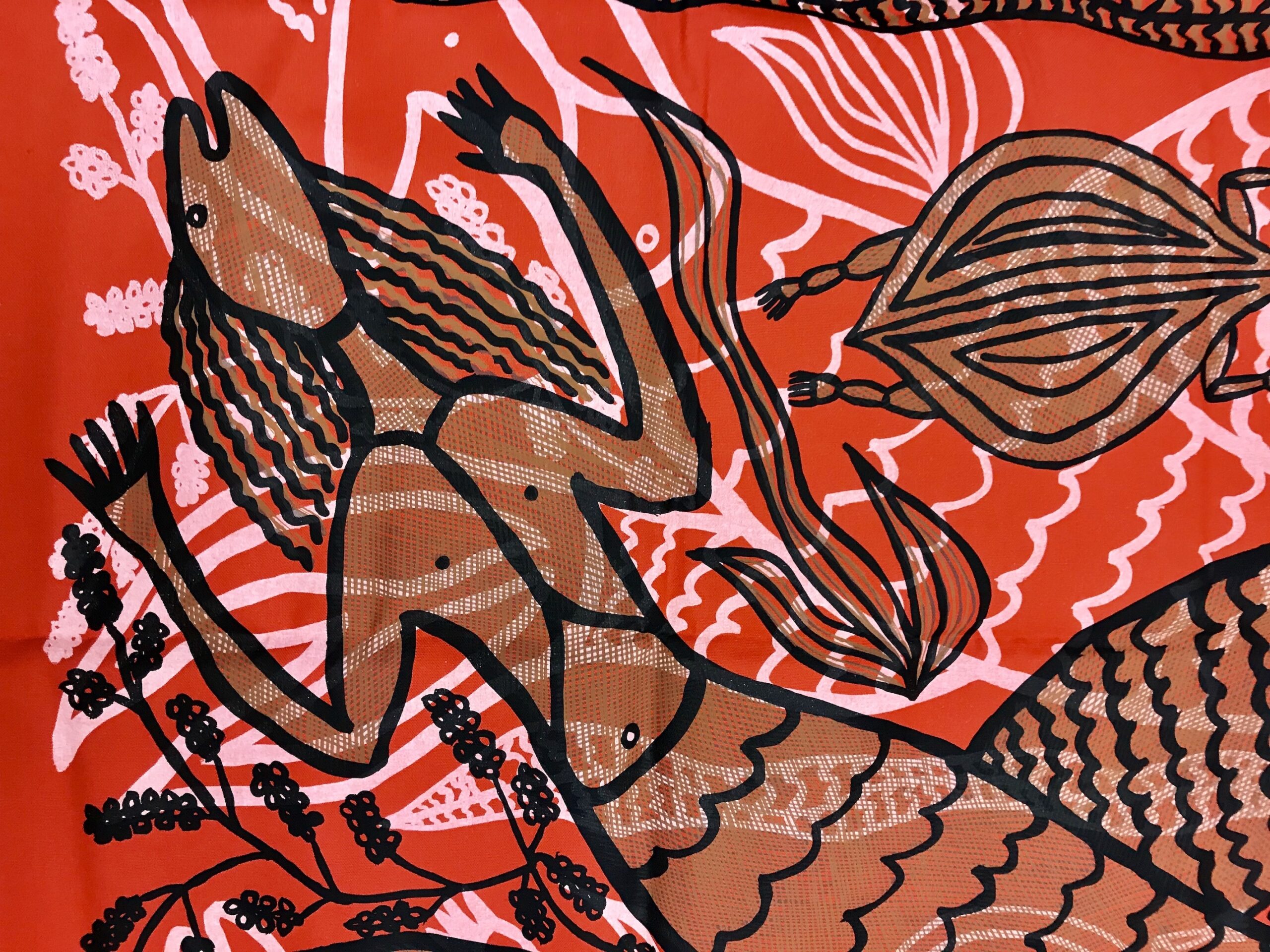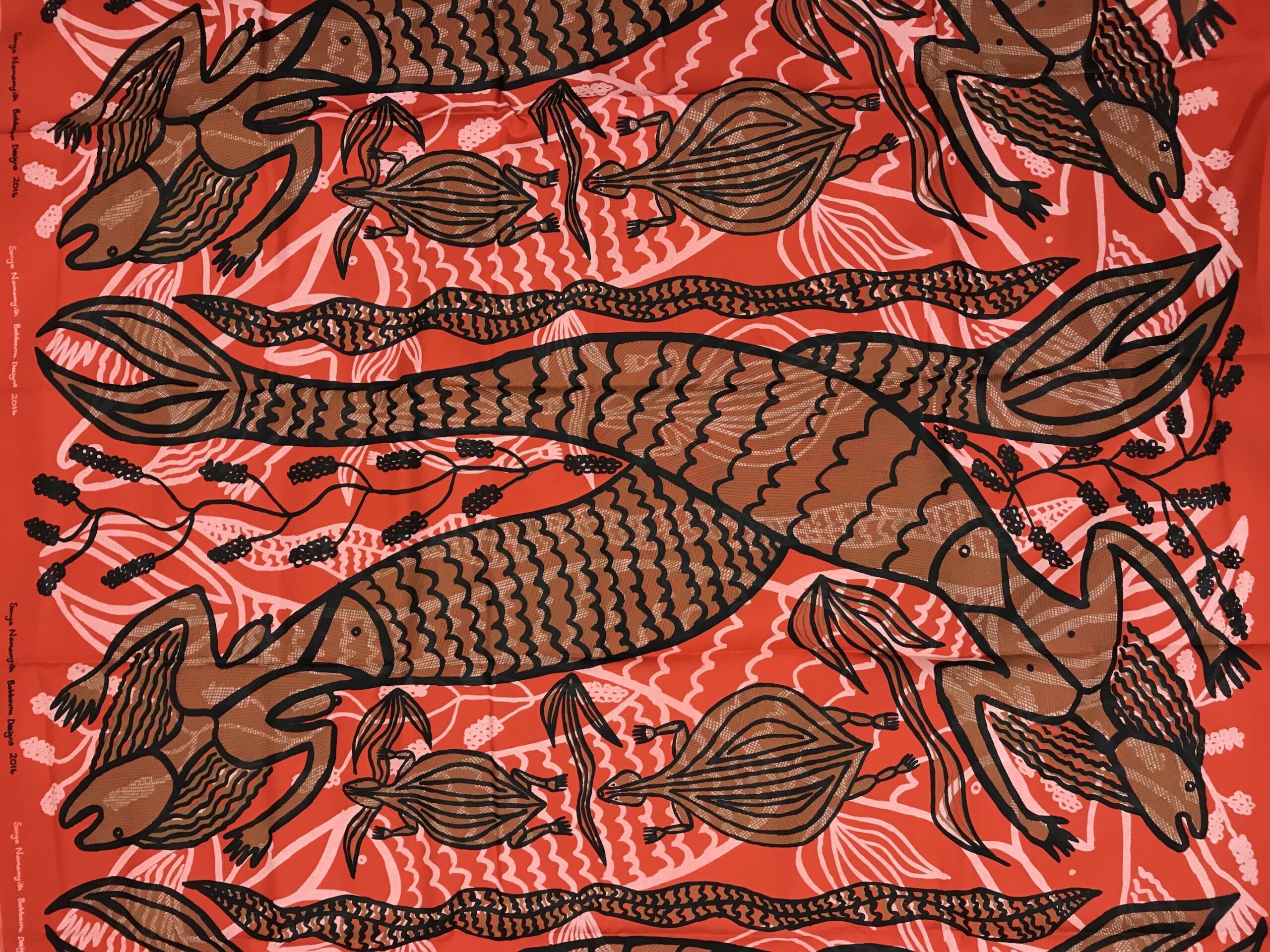 Our iconic design by Sonia Namarnyilk, a four screen design that is so beautiful that it is often used for wall panels. This design was created over 3 years during intensive textile design workshops with Bobbie Ruben.