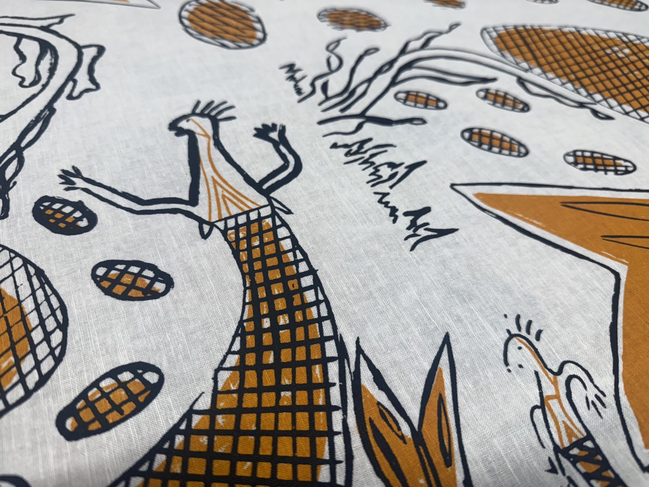 This design depicts the story of the artist’s ancestral dreaming, the Djómi (Fresh Water Spirit).