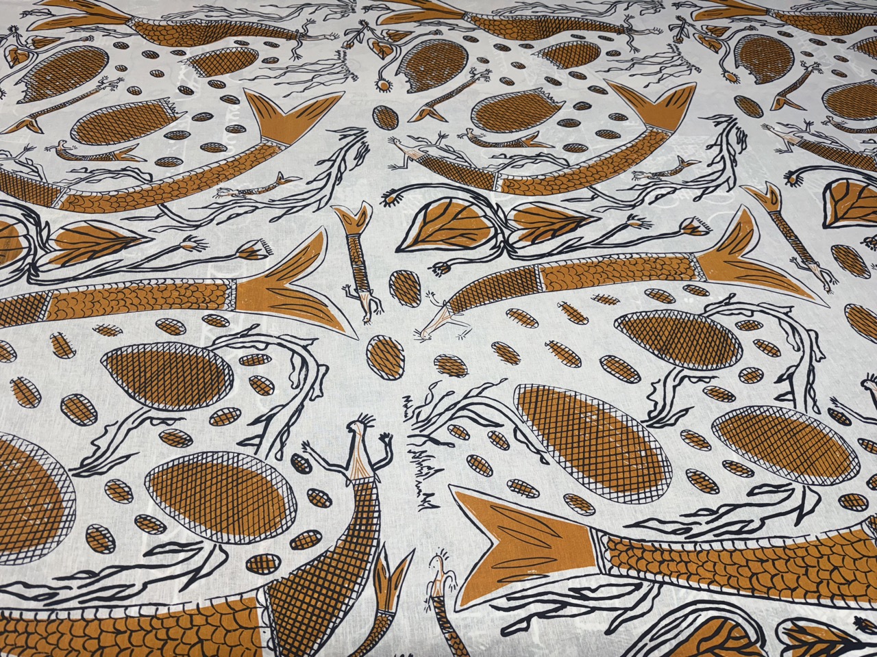 The Djómi figure is a mermaid-like spirit with fish tail that lives in the freshwater stream that flows out to the sea cliff near Maningrida. Djómi is known to be a very powerful fertility symbol.