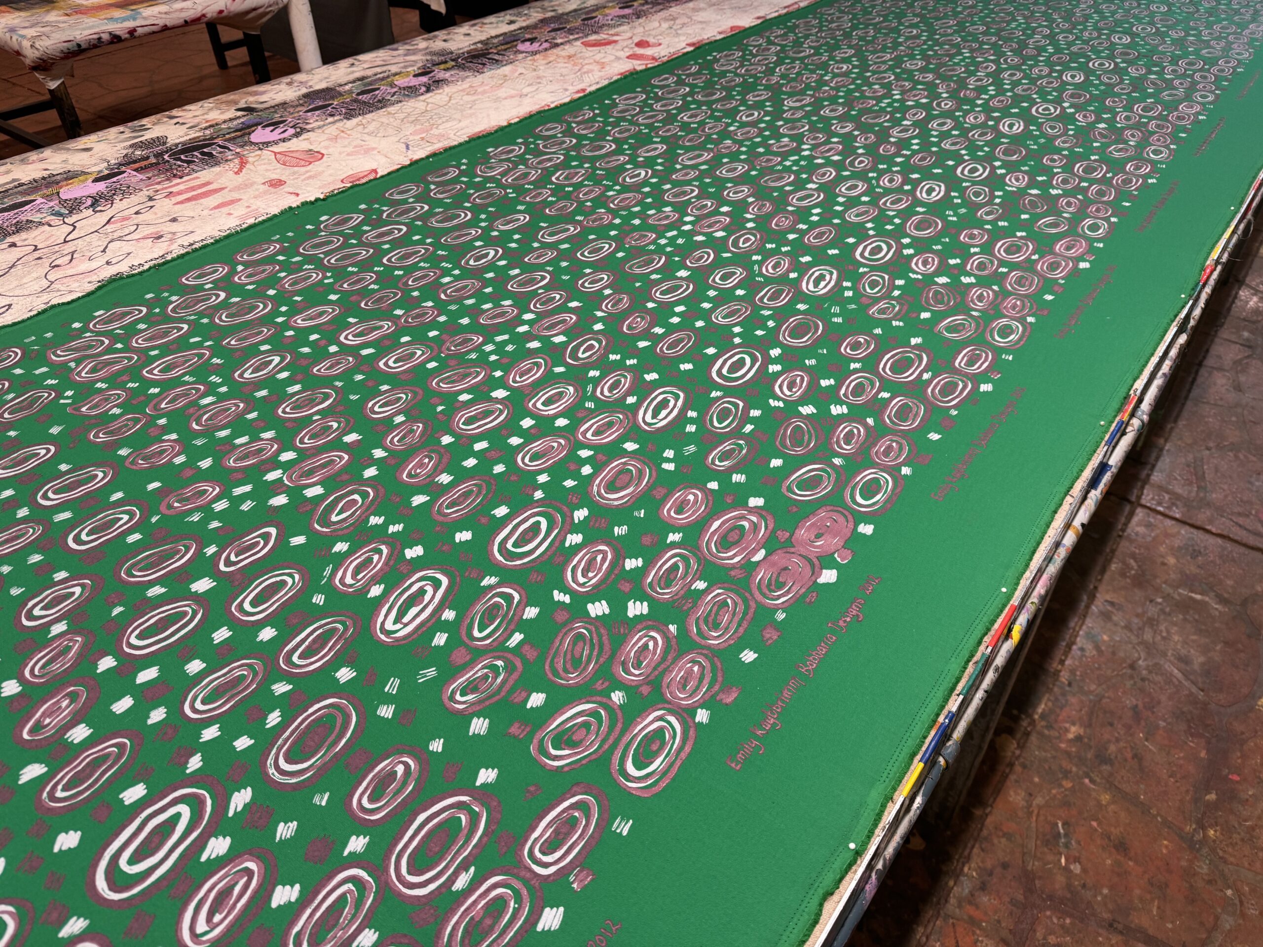 Emily’s first design depicting Dabuno (Brolga Eggs). Emily is the younger sister of renowned Maningrida artists, Jennifer Wurrkidj and Deborah Wurrkidj.