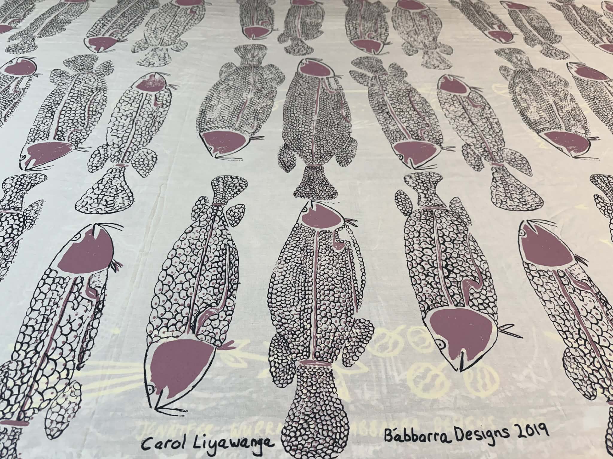 ‘I am proud of my first design, I want to keep this design for future, for my children and grandchildren so they remember this story, this story is a big part of the mularra songline’ Carol Liyawanga Campion