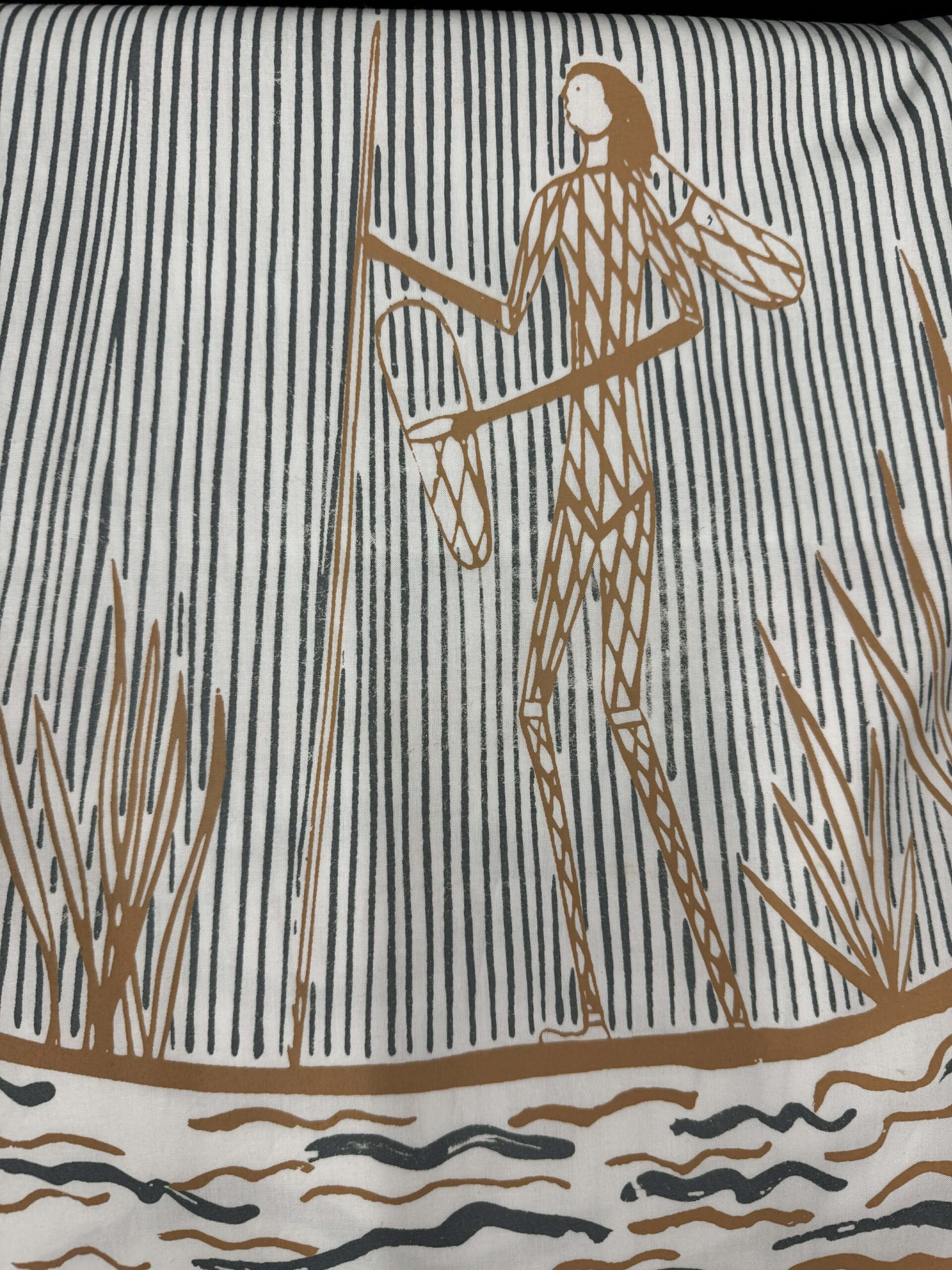 A two colour screen print design from 2022. Jay’s first large format design to join the Bábbarra Designs Collection