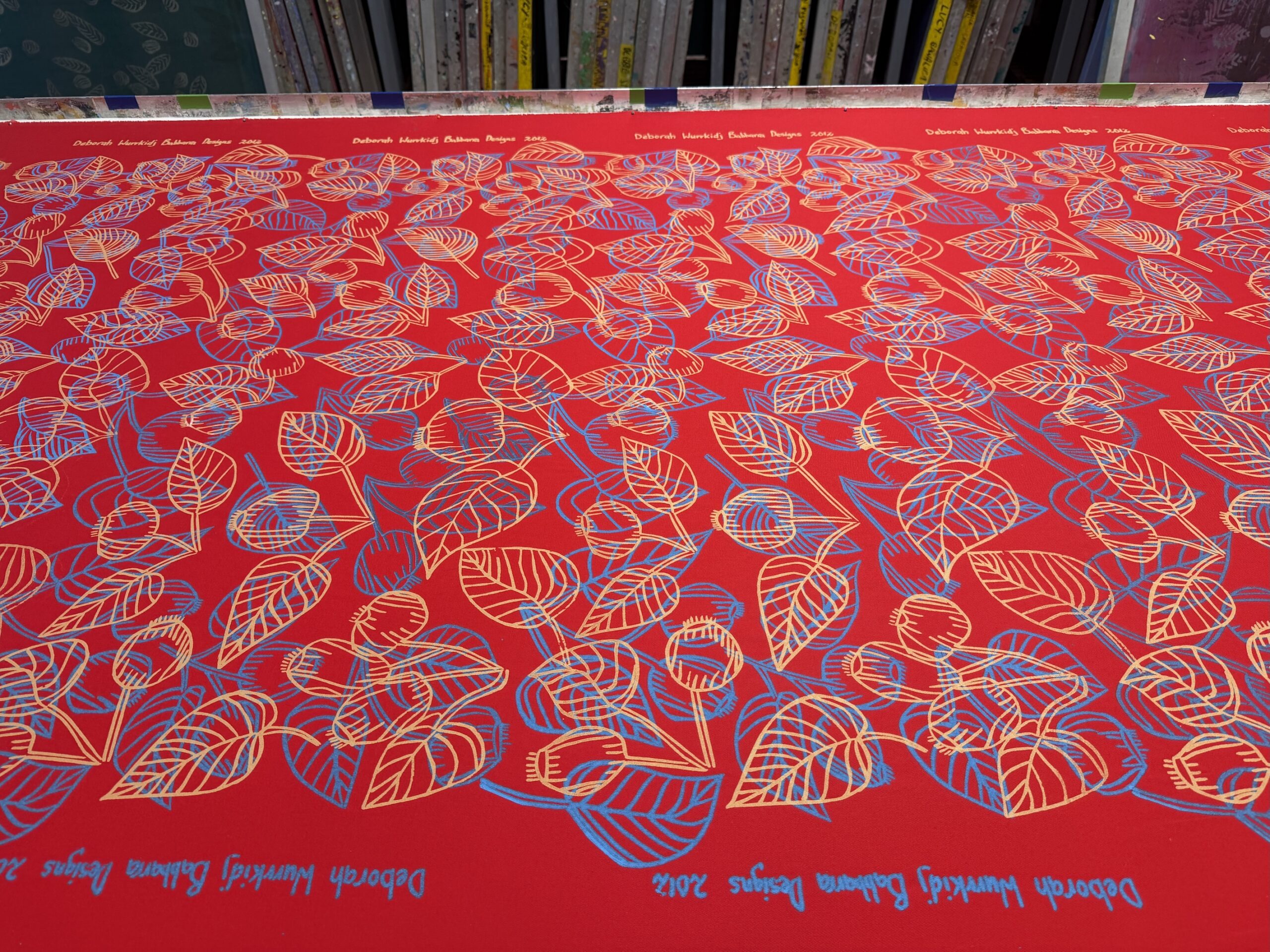 In this design she has depicted man-djarduk (red bush apples) – a sweet, crisp bush food that is a favourite to collect.